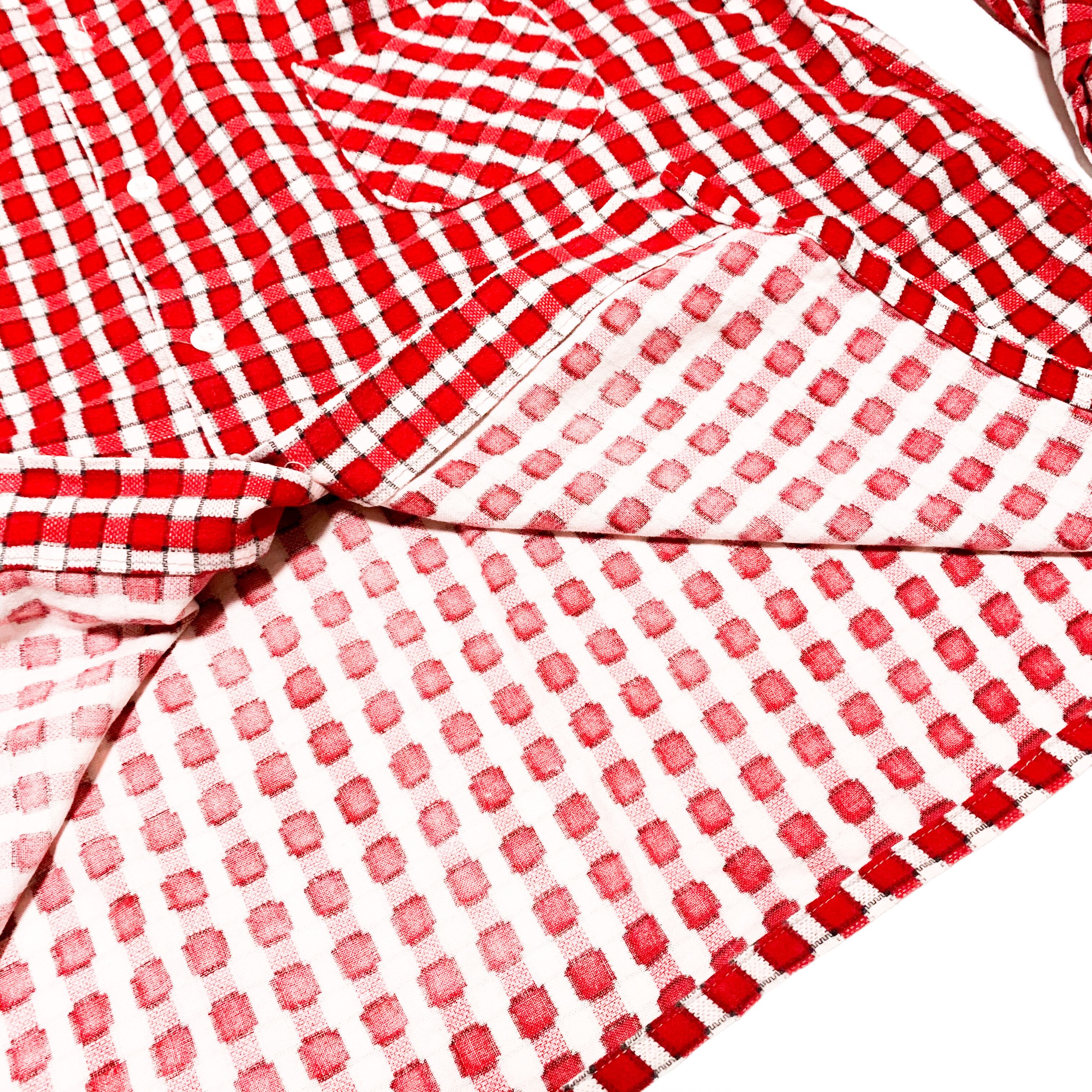 赤にピンクのチェック。