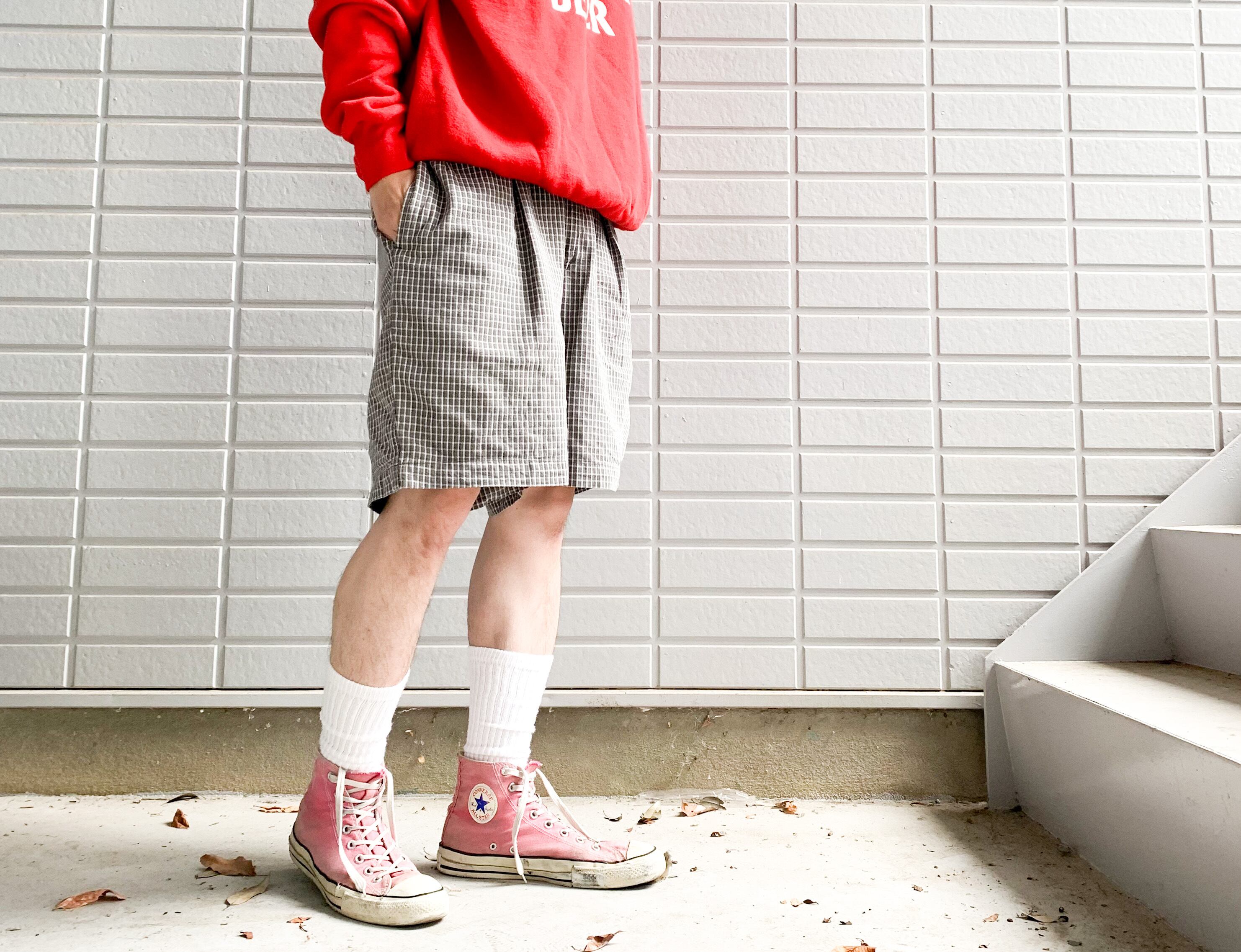 2タックのチェックショーツ。
